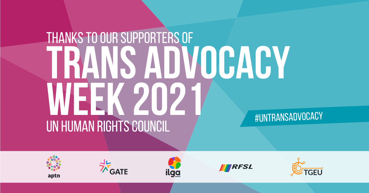 The Trans Advocacy Week partners would like to thank those organisations who signed up as supporters to Trans Advocacy Week 2021. Your endorsement of the work that we are doing at the UN is invaluable to us.